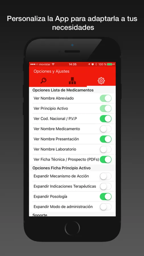 - Posibilidad de personalización de los listados y Fichas de Principios Activos.
