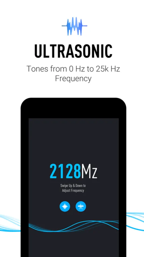 2. This app allows you to generate tones with range from 0Hz to Ultrasonic 25kHz frequency.