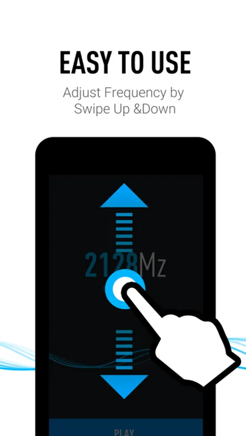 Sonic Wave provides sine tones and you could easily control the exact frequencies. Swipe your finger up and down to raise or lower the frequency of the tones, and directly check the frequency by professional wave visualization.