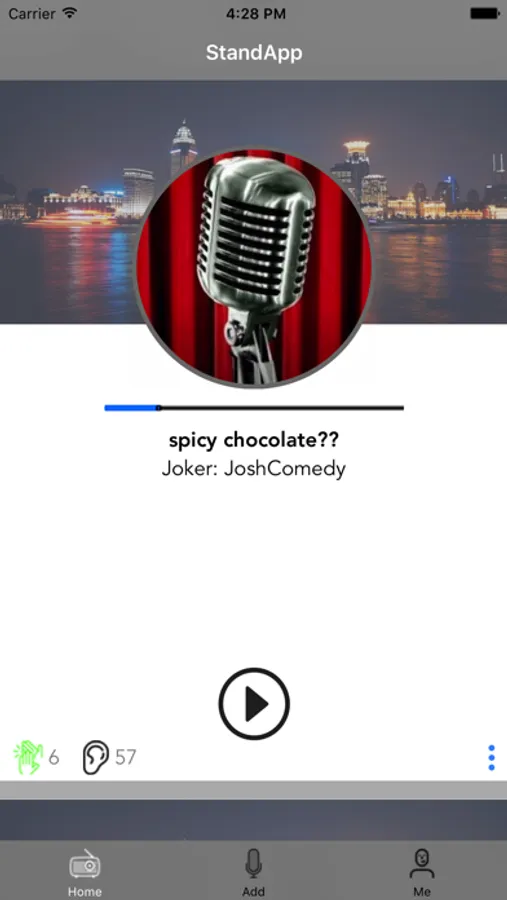 Got jokes? But don't want to do an entire production, with video editing and lighting, acting classes, etc, etc, just to share them? Well StandApp is the answer, quickly record and upload your funny jokes, momma jokes, funny impressions, the good funny stuff, and see how many likes you can get from others.