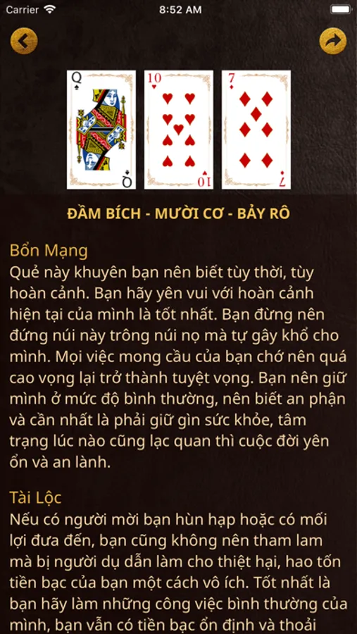 Bói bài tây là thuật tiên đoán hậu vận bằng cách sử dụng bộ bài tây. Quẻ này có ba lá bài từ Lá số 7 đến Lá Át, mỗi một quân bài có ý nghĩa riêng, tổng hợp ý nghĩa của 3 quân bài ta được một quẻ về Bổn mạng, Tài Lộc và Gia đạo, dùng để giải đoán các biến cố tương lai.