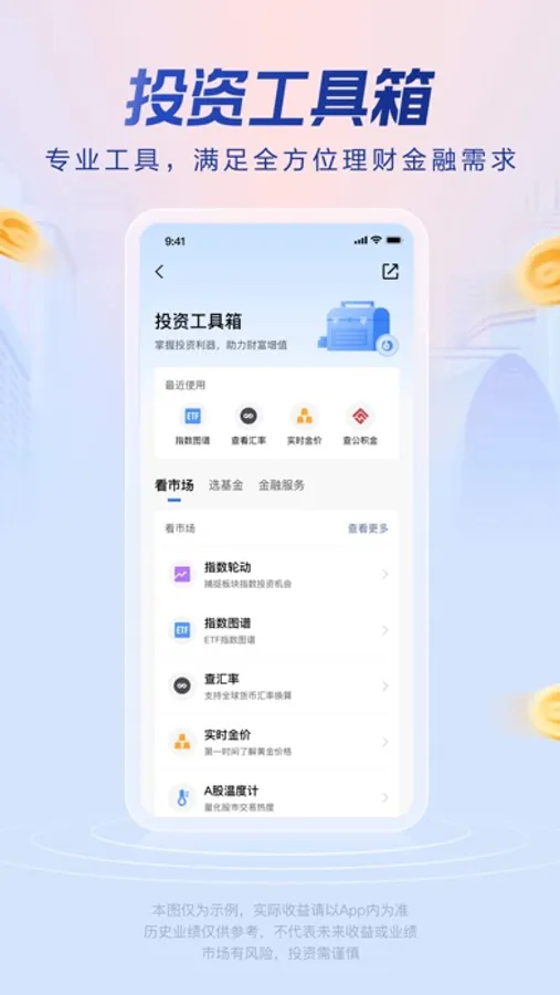 专业的选基工具、投资分析、股票行情、市场解读等,打造专业可靠的理财平台