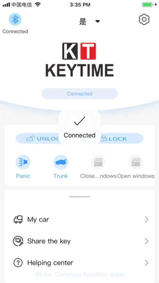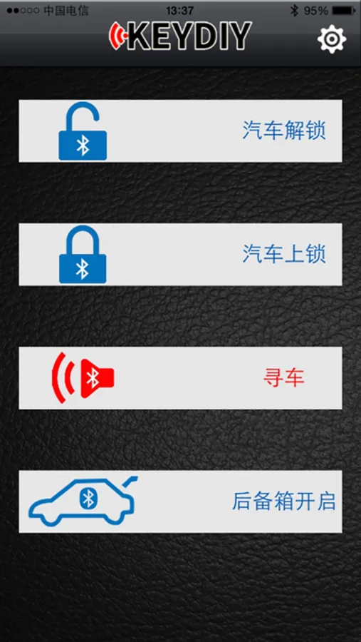 the use of mobile phones and car bluetooth modules into a professional equipment match, without the original car remote control vehicle easily, realize the lock, lock the car, car, open the trunk.Provides a variety of images, key as the main interface, to control the vehicle users just click on the image on the button, can be like a button on according to the real key control of the vehicle.