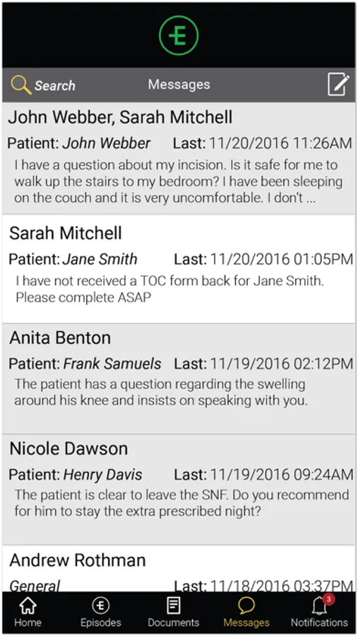The Episode Solutions app provides to healthcare professionals up-to-date information about patient's progress through rehabilitation.