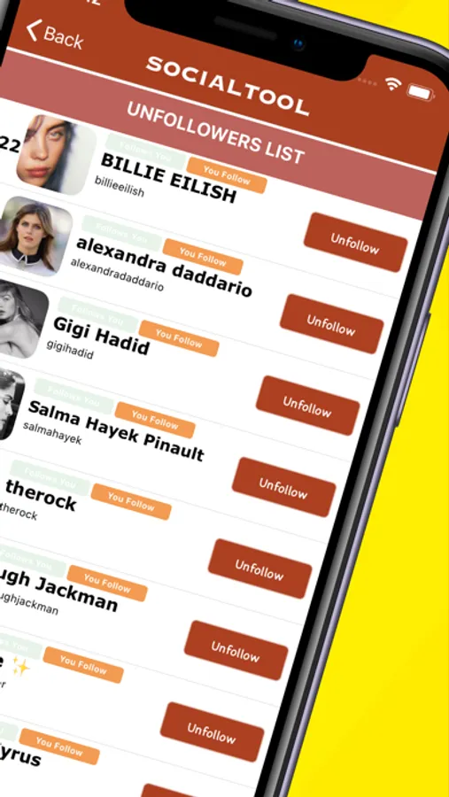 SocialTool Unfollowers list shows you the users which you followed but not followed back. You can unfollow any of your unfollower with one tap.