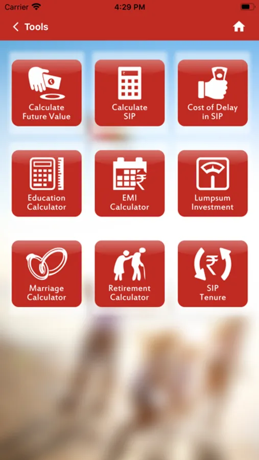 8. Tools: Contains different financial calculators to understand your investment needs for your goals such as children education, marriage, retirement, marriage for your help. Calculators will help you arrive at how much is required for retirement and other goals.