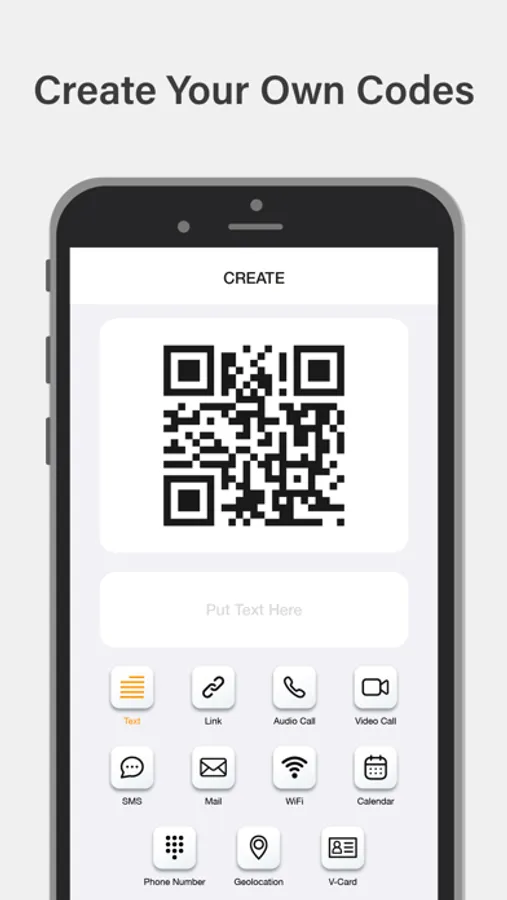 • Create any types of QR Codes : Text, URL, Phone number, V-Card, SMS, Email, Wi-Fi Hotspot, Calendar, Geolocation etc.