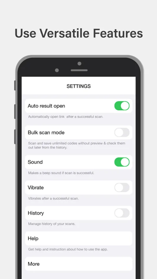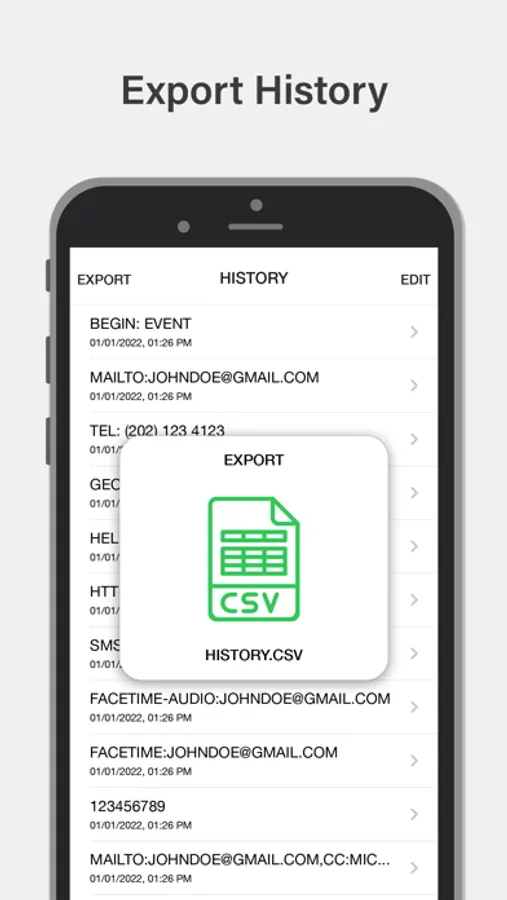 • Easily manage unlimited scan history, export your history as CSV file and share anywhere you want.