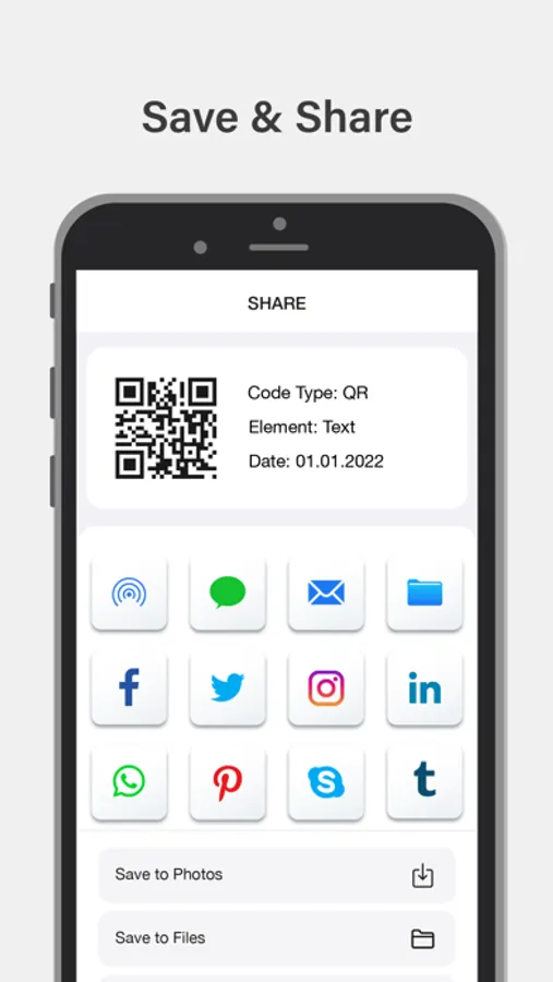 Also Create and Share QR codes to open URLs, connect to WiFi hotspots, add events, read V-Cards, share Geolocation etc. You can even manage product inventory for your business.