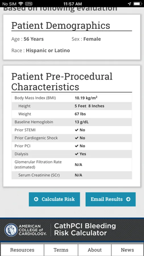 The ACC CathPCI Bleeding Risk Calculator App helps clinicians assess the individualized patient risk of experiencing a bleeding event associated with a PCI procedure. Clinicians can compare individual patient risk to the national average based on data from the CathPCI Registry®. The app facilitates consistent risk assessment and communication between a clinician and patient about the overall PCI procedure.