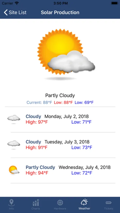 Site Weather – Look that the current weather of your site and a forecast to see what you can expect in the future.