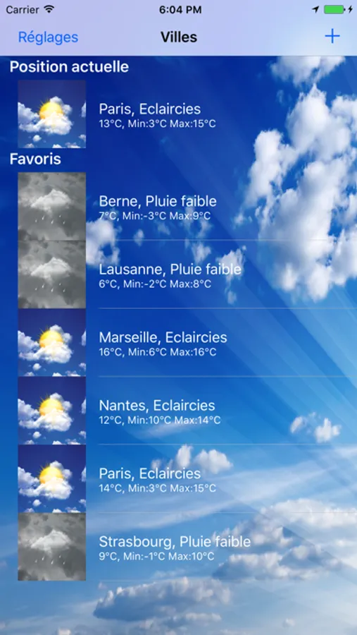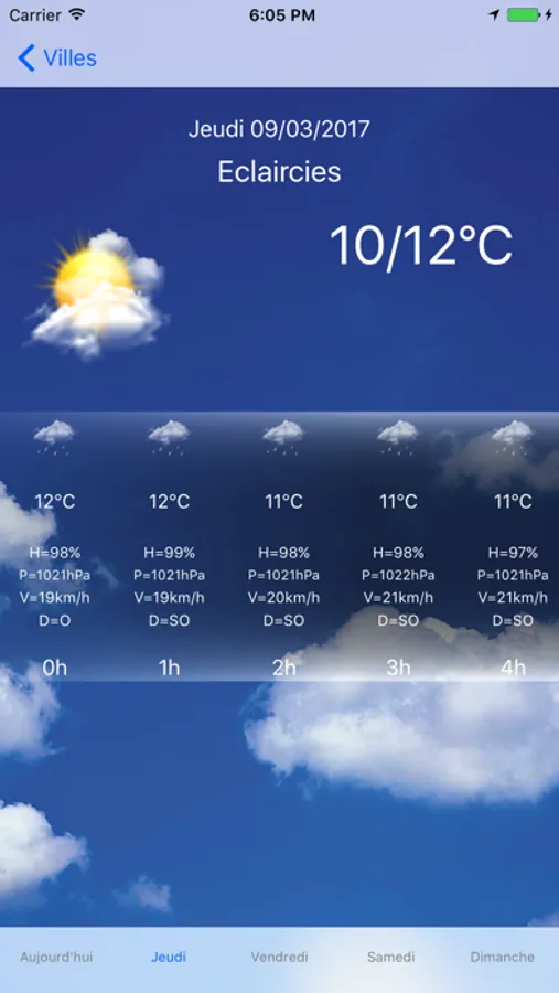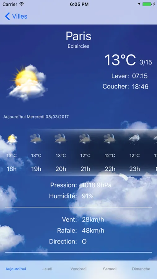 Elle donne les informations du jour et prévisions à quatre jours pour les villes choisies ainsi que pour la ville automatiquement localisée par le service de localisation de votre mobile ou tablette.