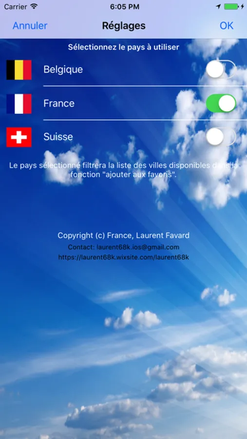 Cette application est basée sur les données fournies par Prévision Météo, http://www.prevision-meteo.ch.