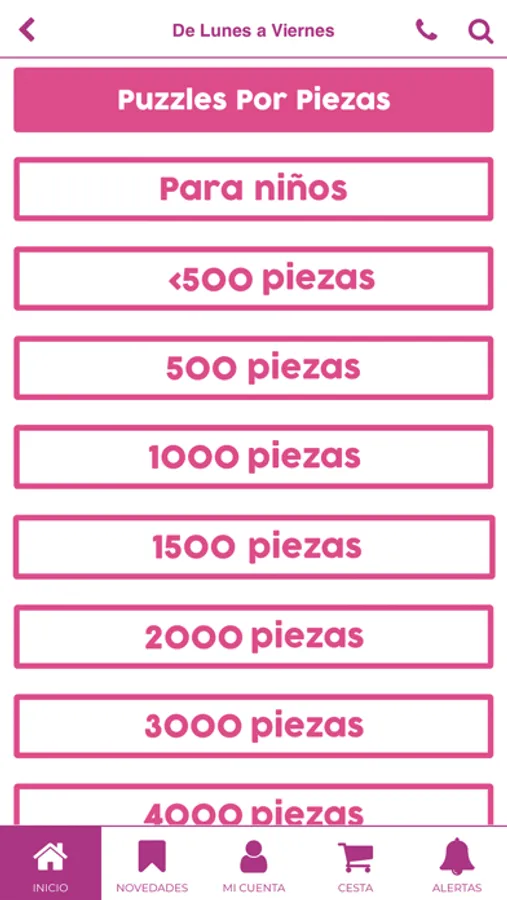 Te ofrecemos la posibilidad de ver cómoda y detenidamente las últimas tendencias en puzzles. En nuestra selección de productos podrá encontrar puzzles clasificados por marcas (puzzles Educa, puzzles Ravensburger, puzzles Clementoni…), número de piezas (puzzle 1000 piezas, puzzle 3000 piezas) o temática (puzzle mapamundi, puzzles infantiles, puzzles 3d…). Todos ellos organizados en un sistema de categorías donde intentamos facilitar a nuestros clientes las búsquedas de los mismos y un catálogo actualizado a diario para incluir las últimas novedades en puzzles.