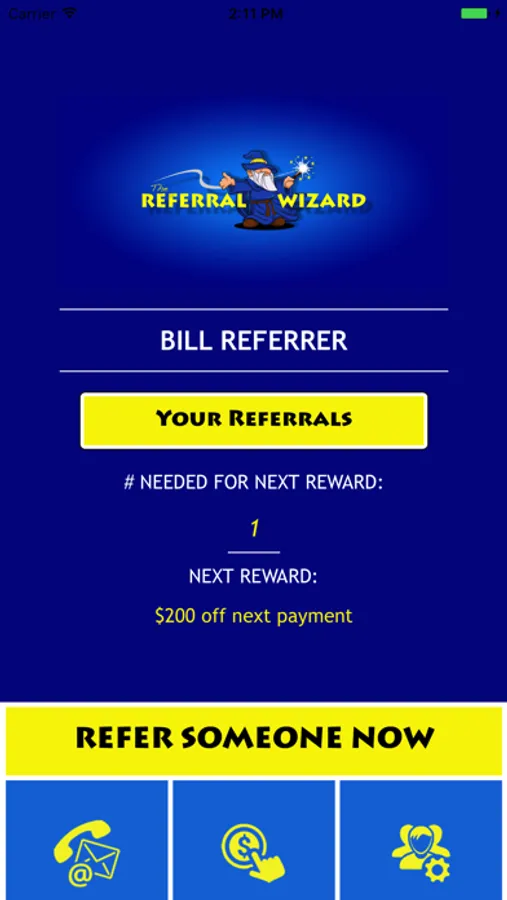The REFERRAL WIZARD app also gives you access to special, member only specials and promotions, and one button access to make your payments or contact a department within the company associated with your app account.