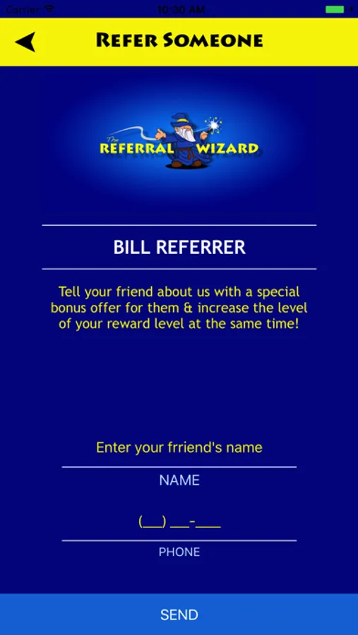 Just click the REFER SOMEONE NOW button, enter their name and phone number and click SEND. It’s that easy.