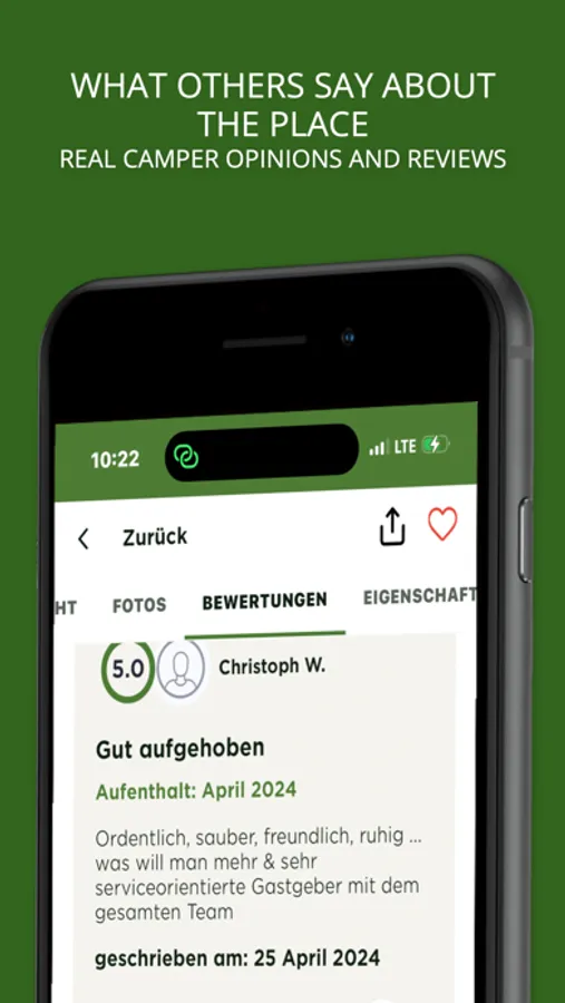 Over 300,000 authentic guest reviews show you what other campers experienced on the campsites. You can also share your own experiences, post pictures and give reviews – directly in the app!