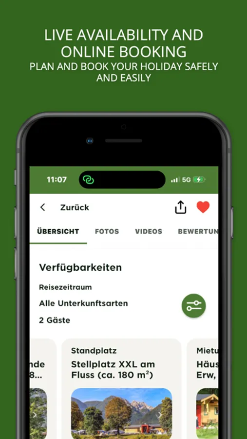Simply enter your travel period in the app and view available campsites that might interest you. This saves you a lot of phone calls and waiting for answers ... and when you have found a suitable campsite, you can secure it immediately and book it easily online.