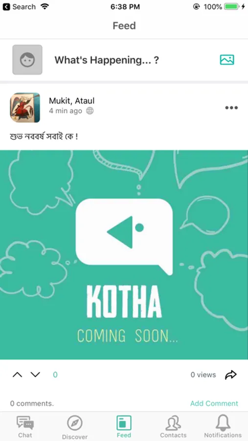 Kotha is a Social Communication & Lifestyle app developed in Bangladesh for Bangladeshi people and Bangla speaking community around the world. The purpose of the app is to offer Bangladeshis their own social media & communication tools, promote use of Bangla language and at the same time offer daily life useful local services, lifestyle contents, latest news and entertainment etc.