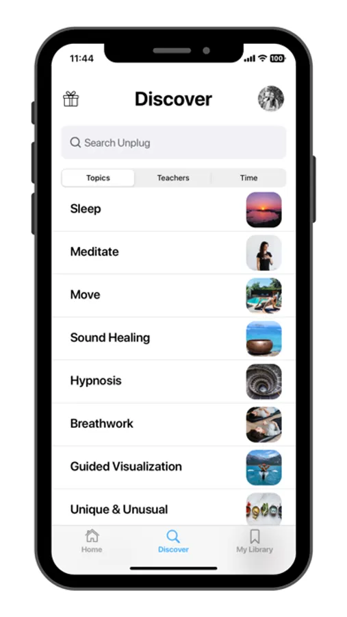 Unplug is more than just mindfulness or breathwork or a sound bath app. Unplug is also hypnosis AND guided journey AND aromatherapy AND so much more app.
