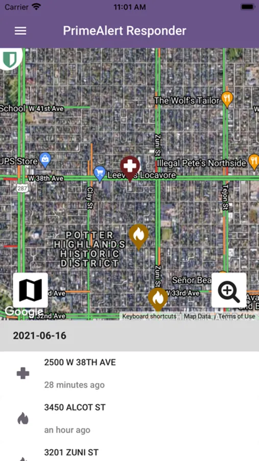 The mobile app provides at- a-glance dispatch and mapping information. An intuitive swipe interface quickly transitions between the latest, and prior dispatches. One-touch serves up driving directions to the dispatch location. Prior dispatches display one-by-one and is searchable by multiple fields.