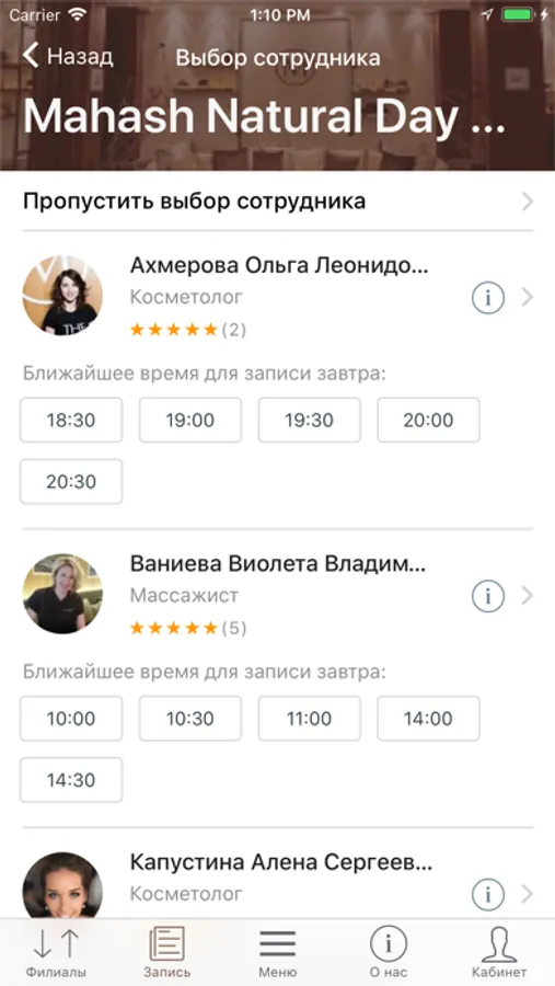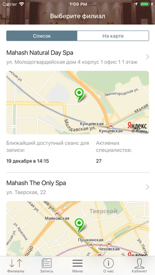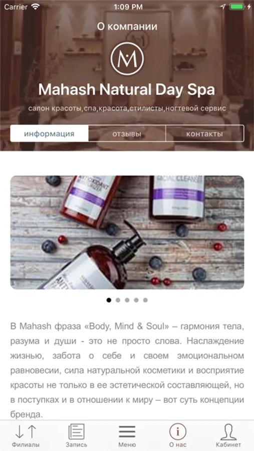Насладитесь его удивительной энергетикой и побалуйте себя роскошным уходами для лица и тела на основе чистейших органических ингредиентов, бережными SPA-маникюром и педикюром, аюрведическими массажами или новым цветом волос. Через мобильное приложение записаться на любимую процедуру можно всего парой касаний экрана телефона! Оцените, насколько это удобно.