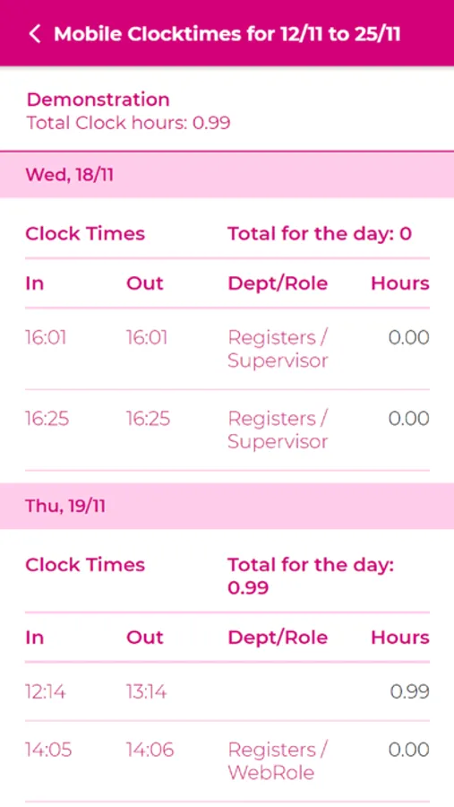 7. Ability to Clock In/Out to a Department/Role depending on customer configuration