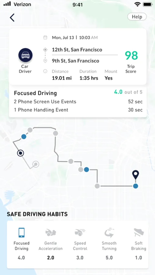 Copilot is your partner in visualizing and improving your driving safety. Copilot automatically detects trips and analyzes driving behavior, providing a turn-by-turn breakdown of each drive. Drivers can identify their strengths and opportunities for improvement by seeing their dangerous behaviors on an interactive map. Copilot detects crashes and other signs of unsafe driving like distracted phone use, speeding, hard braking, rapid acceleration and hard turning.