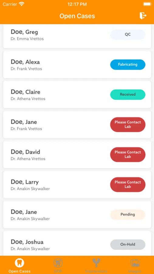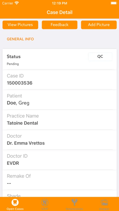 It’s very simple to instantly see all of your cases, and real-time status updates on one screen. Just sign in to see a list of your open cases ordered by date. Each list item includes the patient name, doctor name and a color-coded label which indicates the status of your case: Received, Fabricating, QC, On Hold and Shipped.