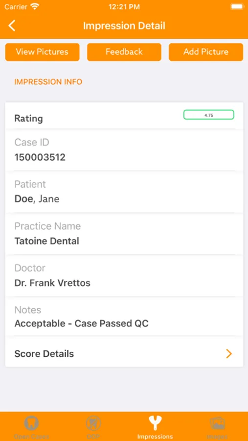 To track each case in real-time just click on the patient’s name and dive into all the status details, including case ID, due date, date received and estimated ship and delivery dates.