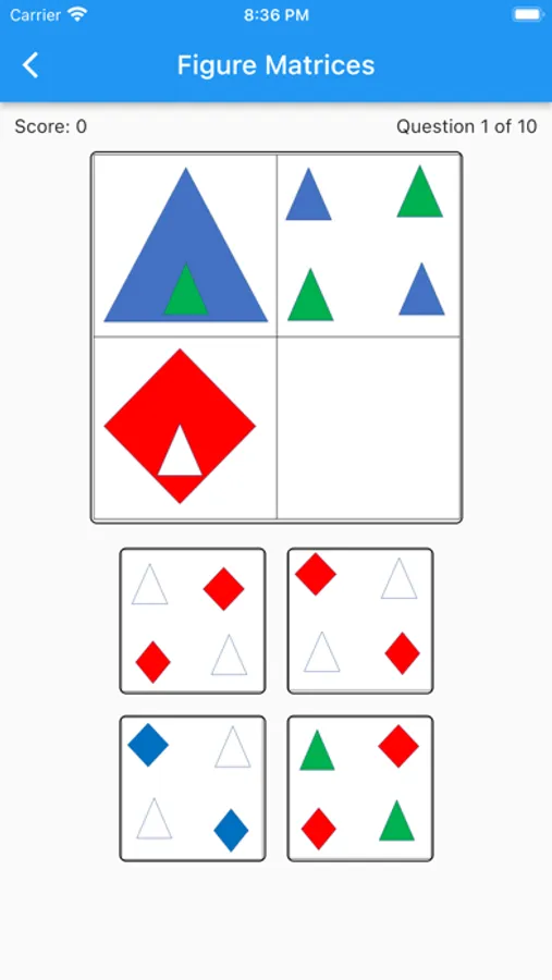 A full length practice exam can run you $30 in paper form, this app is presented at a tenth of the cost and features enough questions to make multiple practice exams. Our math sections in particular have over 300 questions in the bank. Lets also mention that this app is in full color unlike your expensive paper based exams. This is important as the real COGAT test uses color in the Figure Matrices and Classification.