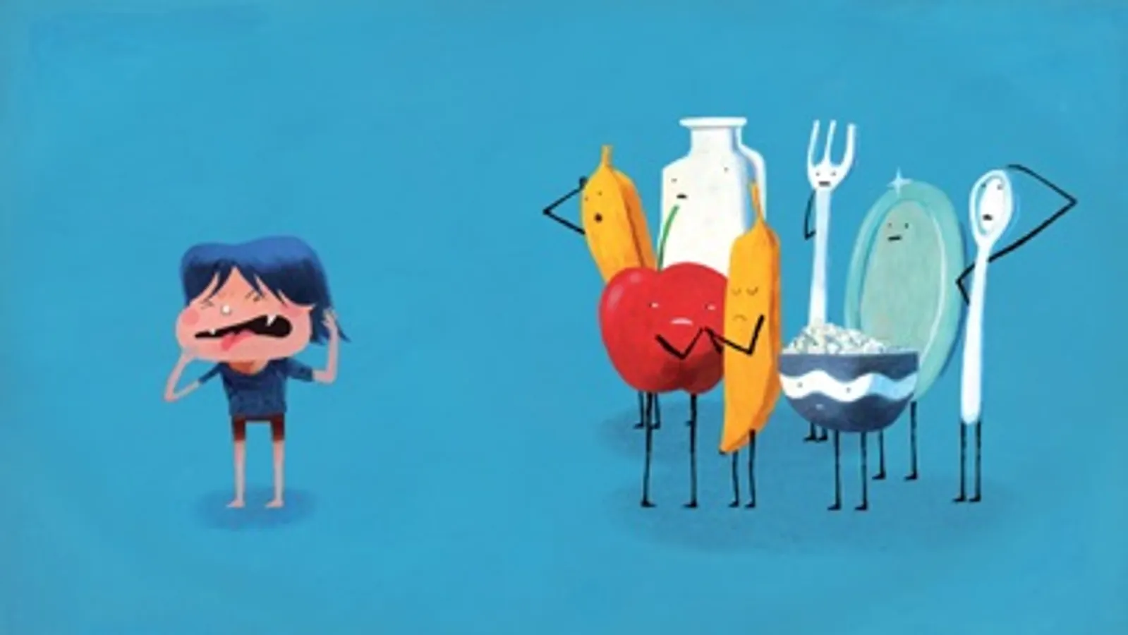 In this wordless story by Excel Dyquianco and Marcus Nada, dive into the colorful world of a stubborn kid. Enter into the mind and mouth of Miguel, a boy who rejects healthy food in favor of sweets and treats. Fun and whimsy surrounds Miguel as he indulges himself with chips, hot dogs, lollipops and ice cream. What will be the cost of his foolhardiness? Will he ever eat healthy again? Find out in this story of ice creams and apples.
