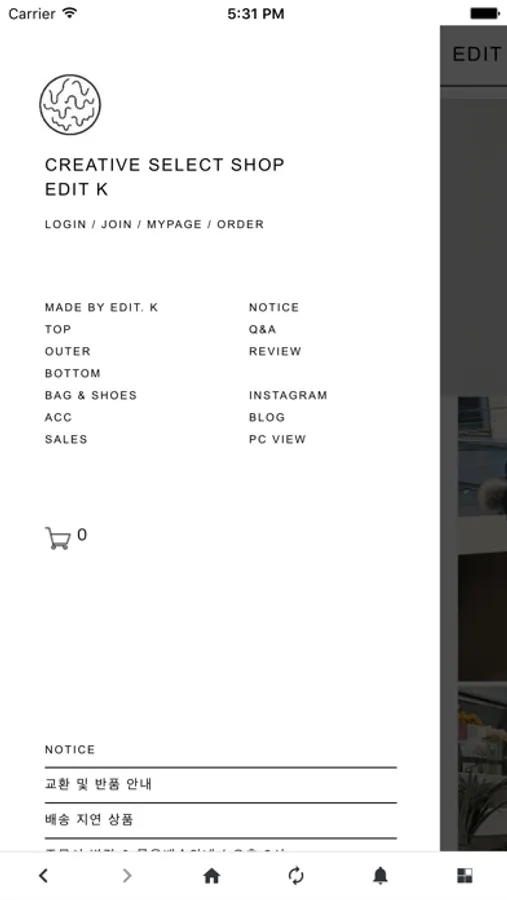 본 APP은 웹사이트 쇼핑몰과 100% 연동되어 있어