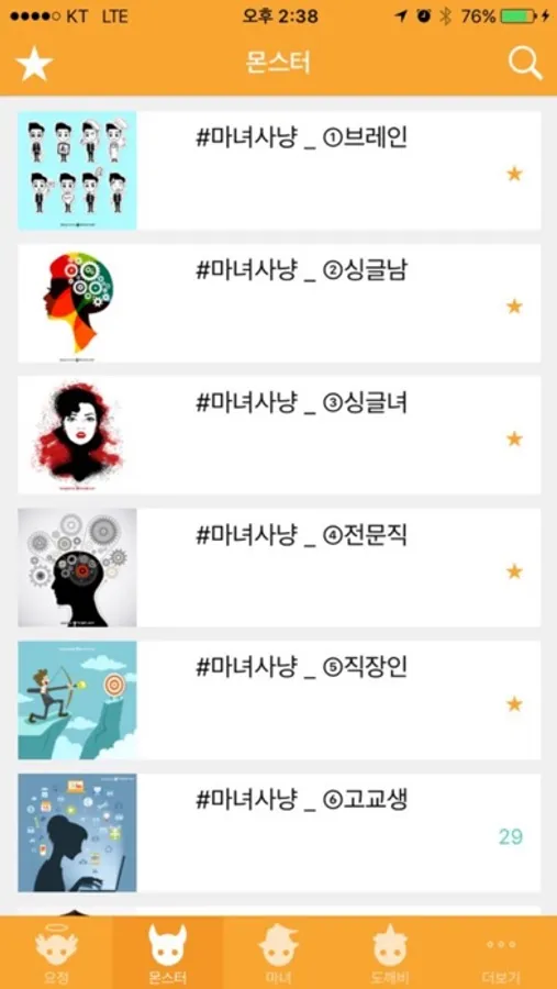 : 클릭수.조회수에 따라 ‘별’이 확보되고, 그 통계는 각종 이벤트의 우선순위 자료가 됩니다.