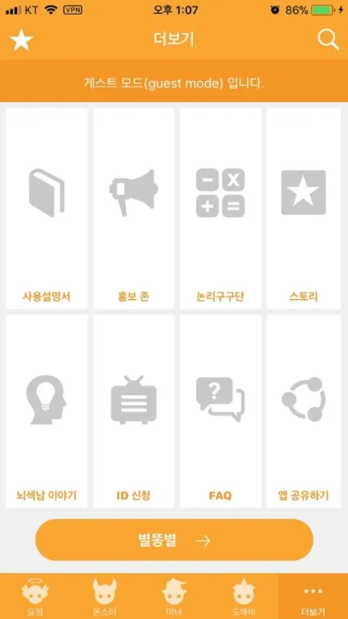 : 로그인을 하면 마녀사냥 앱을 이용할 수 있고, 별을 확보할 수 있습니다.