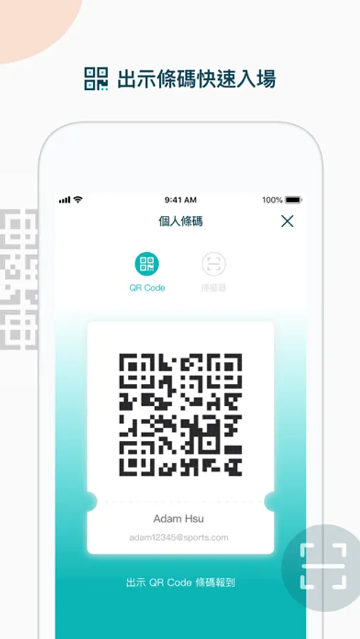 ● 個人條碼:透過個人條碼可以在智能場館中,刷碼進出特定場地