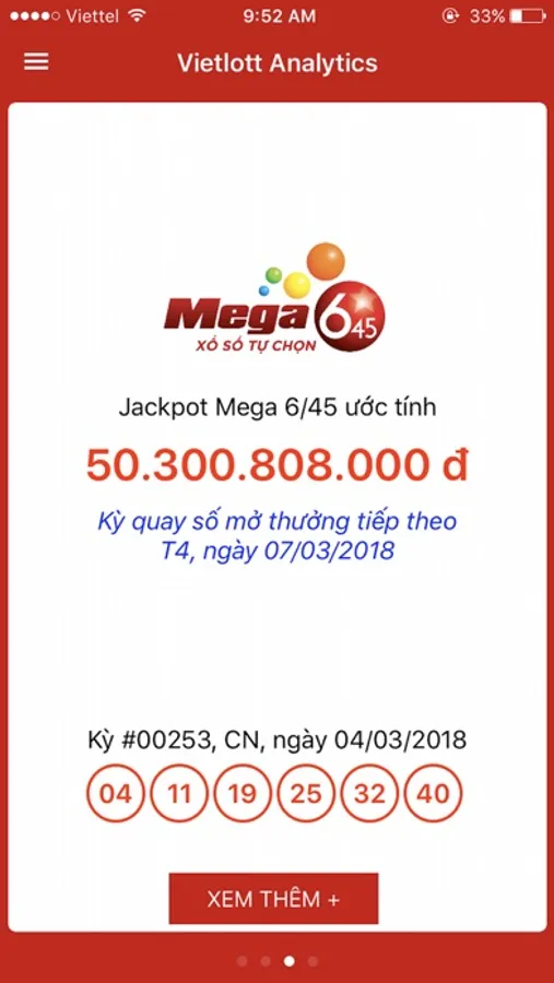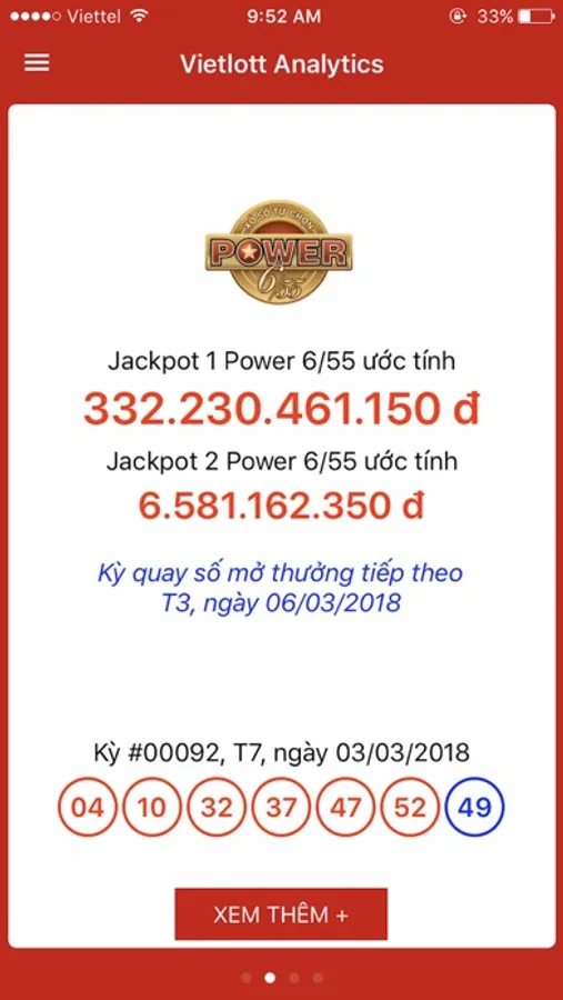 - Xem trị giá giải thưởng Jackpot của kỳ quay thưởng
