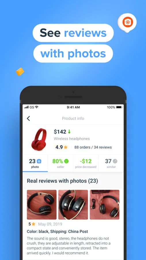 The application collects data from Ali and gives clear recommendations about products, so that you can spend just a few seconds to make decision if the product is worth buying or if you should try another one.