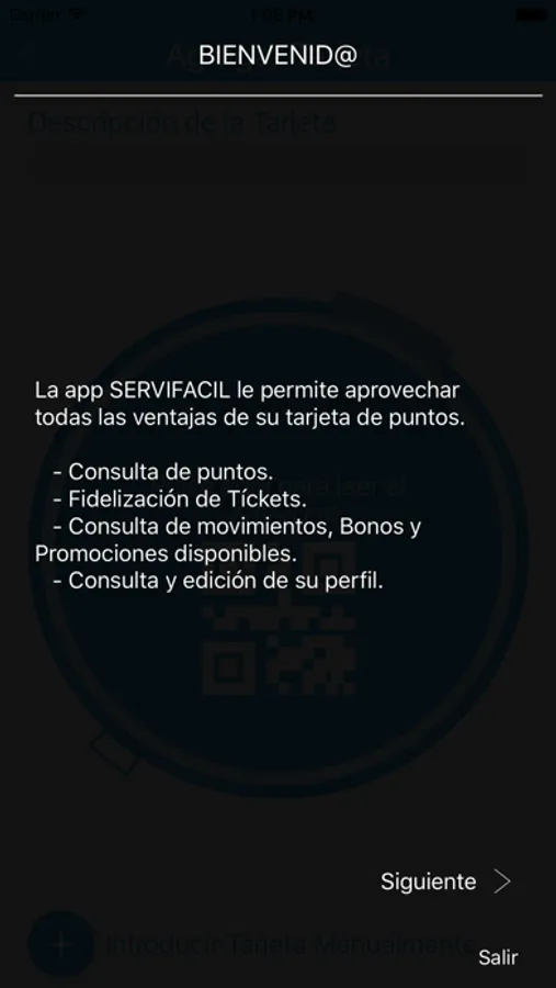 Aplicación para clientes suscritos a la plataforma de fidelización SERVIFACIL