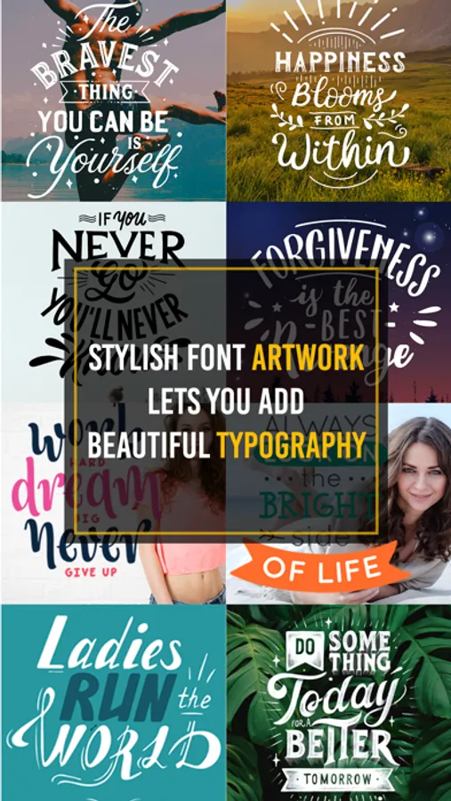 Make fantastic visuals by transforming your text into amazing typographic designs. Select a photo, edit text and get random typography on a single click.
