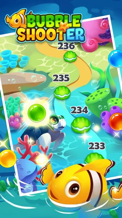 Bubble Shooter is a classic and most playful shooting game. Match and pop colorful bubbles and rescue all cute fish and other lovely animals trapped by bubbles over 1000 captivating levels. Bubble Shooter, the most played and famous shooting game since the arcade machines age, first choice for your IOS device.