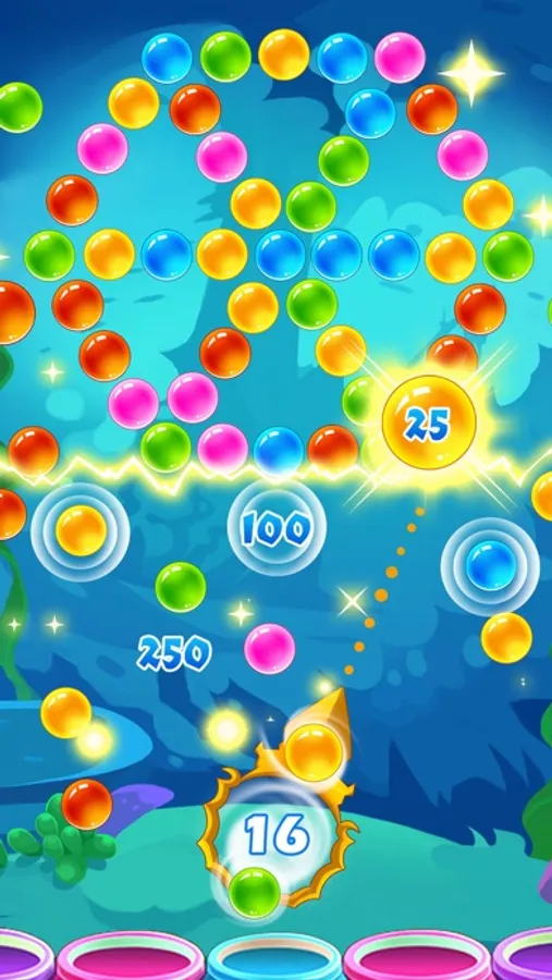 ●Shoot bubble to clear the same color bubbles to complete the puzzle level.