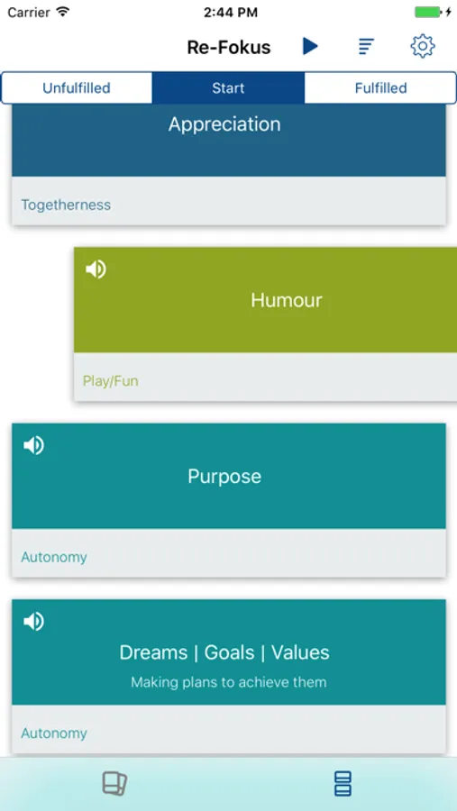 Mit Re-Fokus, der besten App für mehr Klarheit und Frieden fällt es dir leicht auf deine Bedürfnisse zu kommen und zu verstehen, worum es dir wirklich geht!