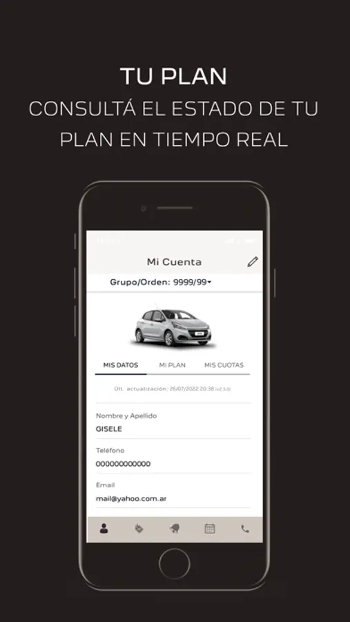 Luego de Registrarte con una contraseña asociada a tu DNI, vas poder ver tus datos personales y modificarlos, informarte de las características de tu plan y estado de tus cuotas, descargar la cuota del mes, ver los resultados del acto de adjudicación, solicitud de carpeta y pedido de vehículo.