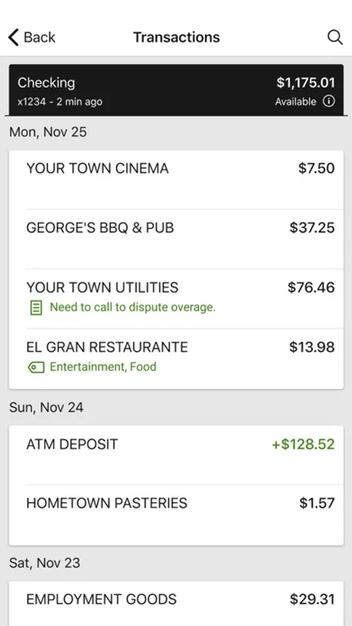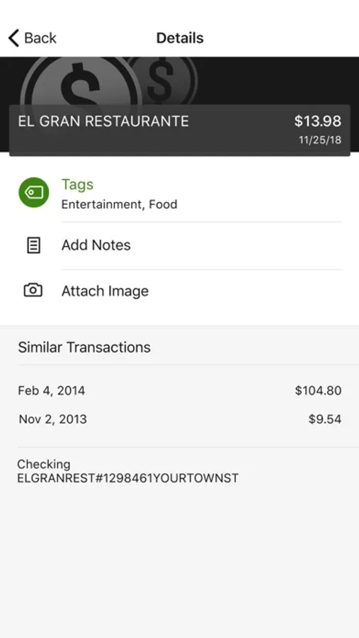 Add Tags, Notes, Images & Geo-Information: By enhancing transactions with custom tags, notes or photos of a receipt or check, you have the ability to stay organized and find exactly what you’re looking for when searching through your finances.