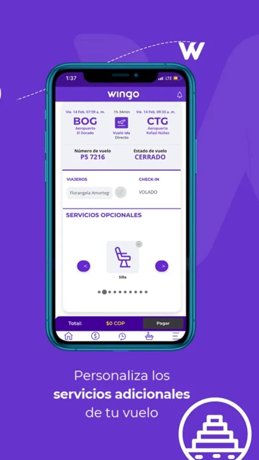 Meet our Wingo Airline App, an application with multiple functions to buy flights at the best prices and manage your reservations from the comfort of your cell phone. At Wingo, good vibes characterize us, that's why we make it easy for you to make changes or add services to your reservation, make mobile check-in and thus present your boarding pass from your cell phone.Try our application, easy, fast and secure from wherever you are.