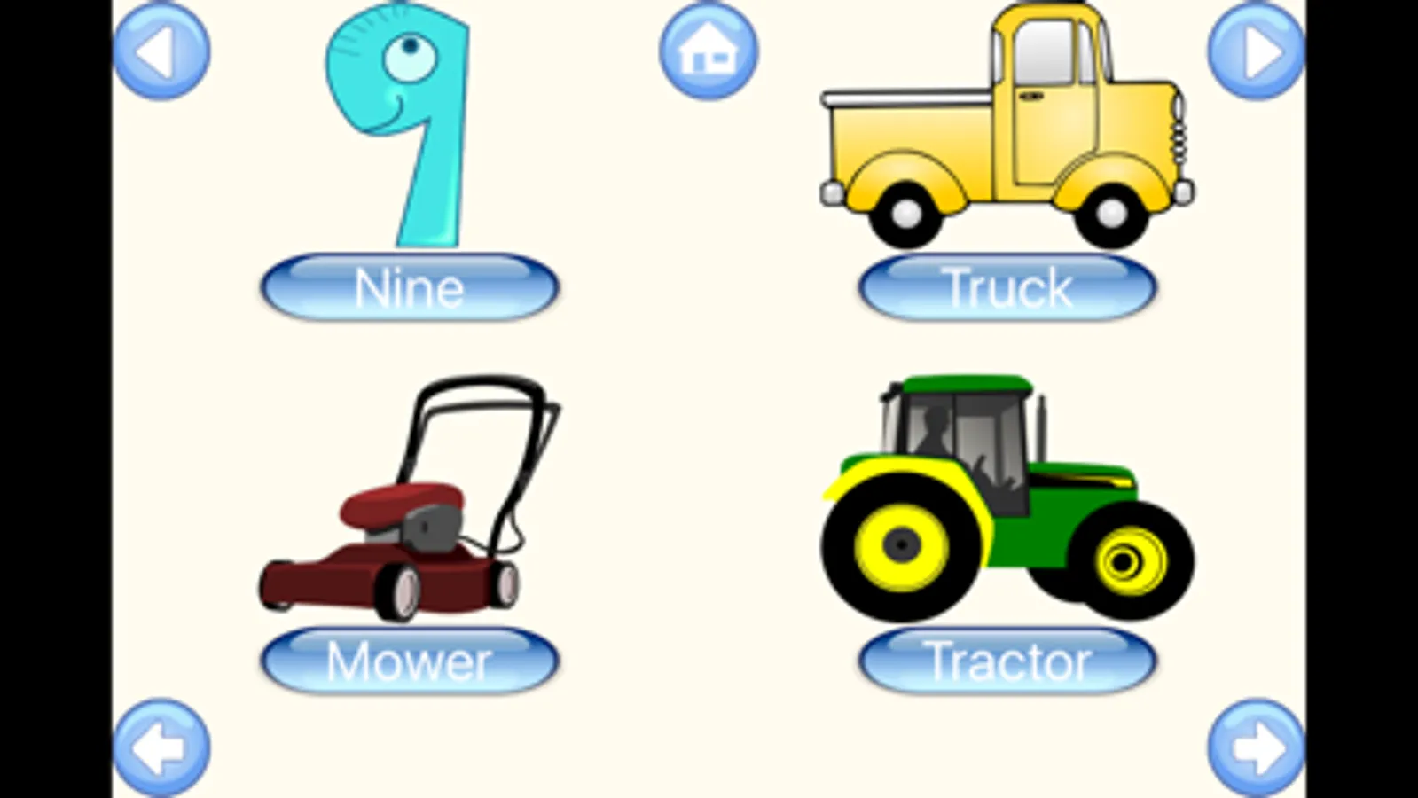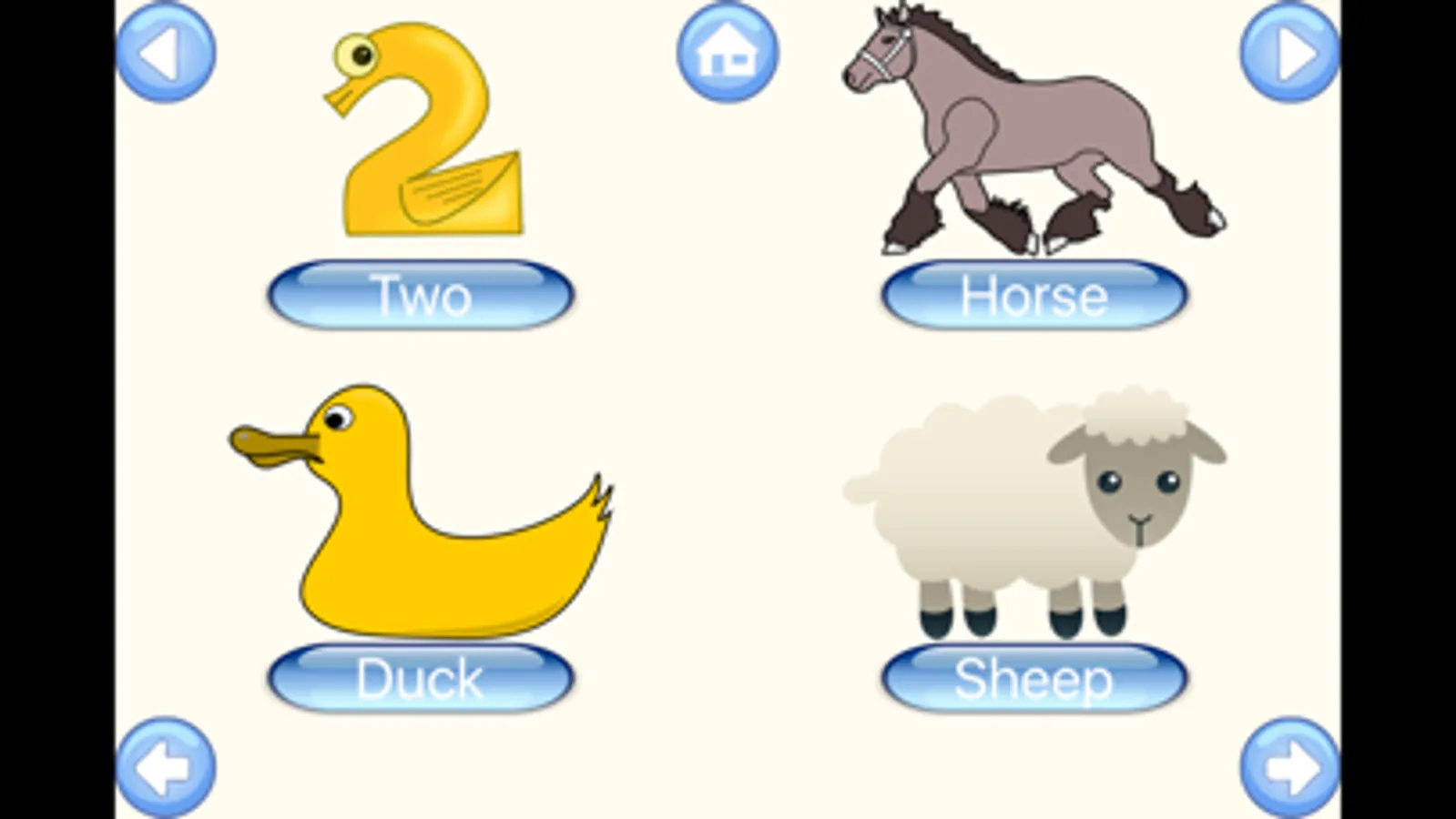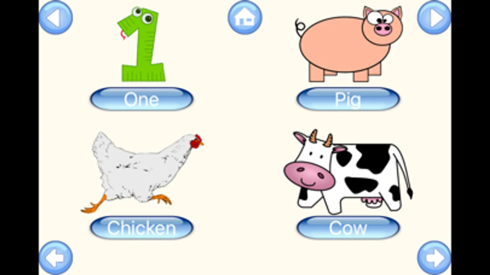 You can tap a next button to see the next picture, use a big buttons to repeat farm English names and use a real photo to repeat farm sounds.