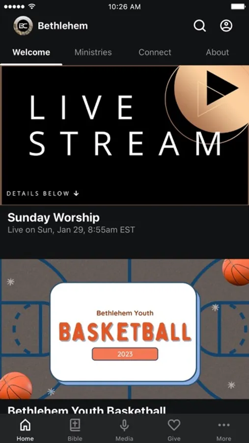 The bethlehemchurchlive App was created with the Subsplash App Platform.