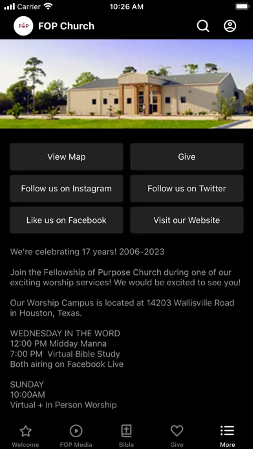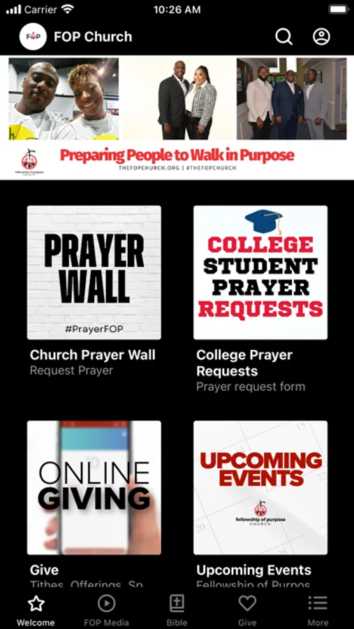 The Fellowship of Purpose Church App was created with the Subsplash App Platform.