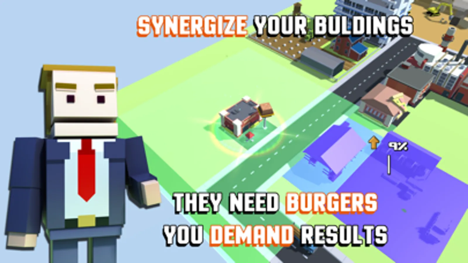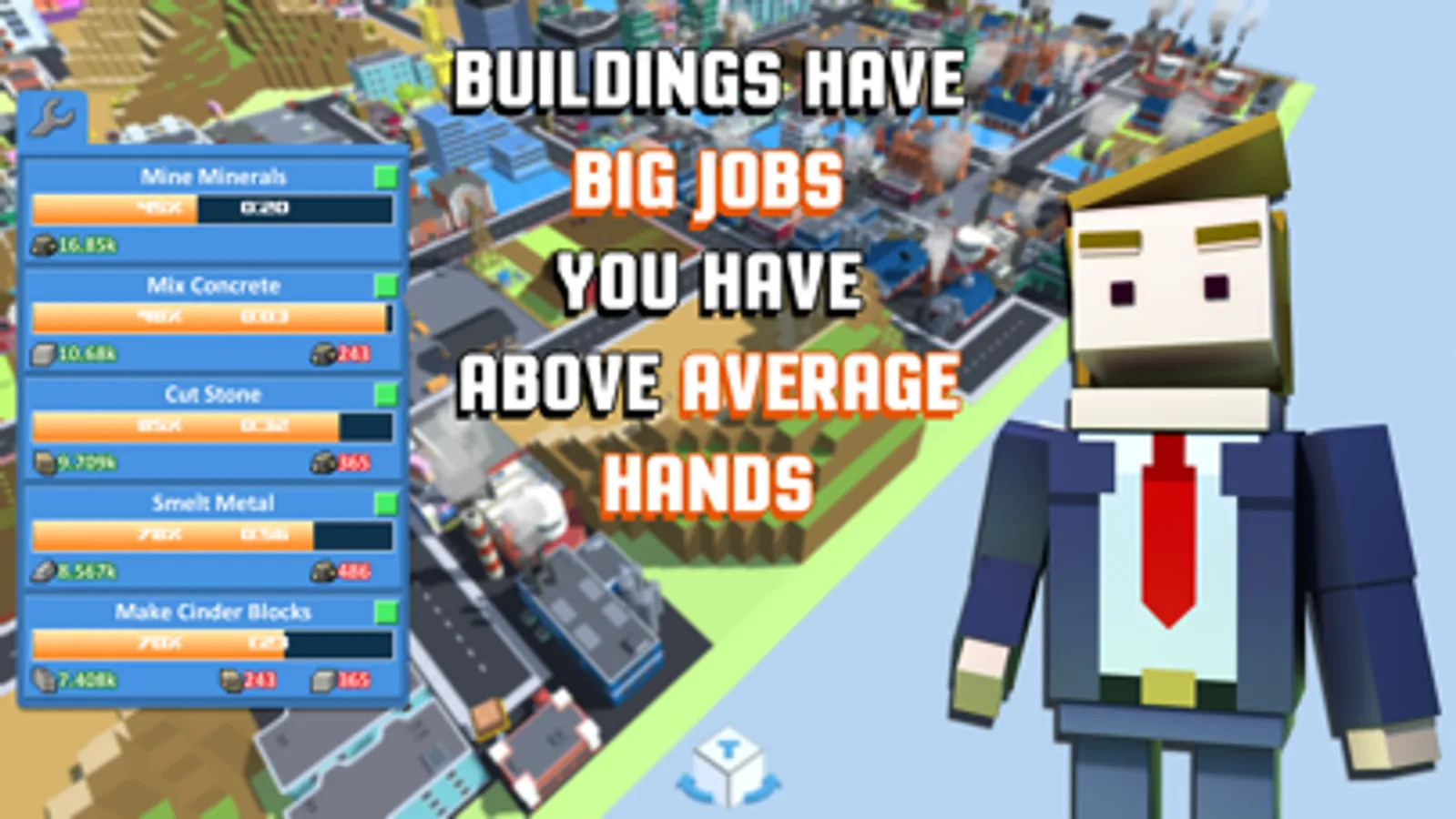 Join Mr. Business on his quest to overcome his daddy issues by overcompensating for absolutely everything! Build the biggest town with the longest towers and most materialistic materials! Watch each building automatically consume and produce a variety of resources! The only finger you'll ever have to raise is your index finger, because exercise is a waste of time meant for the unwashed masses! Wallow in narcissism and shower yourself with boosts that come from the most golden of chests, then fill the hole in your heart by equipping them to buildings! Feel the joy of being Mr. Business' totally not imaginary subordinate, because you're the only thing keeping him from realizing he's another piece of detritus slowly spiraling around the toilet bowl of life!